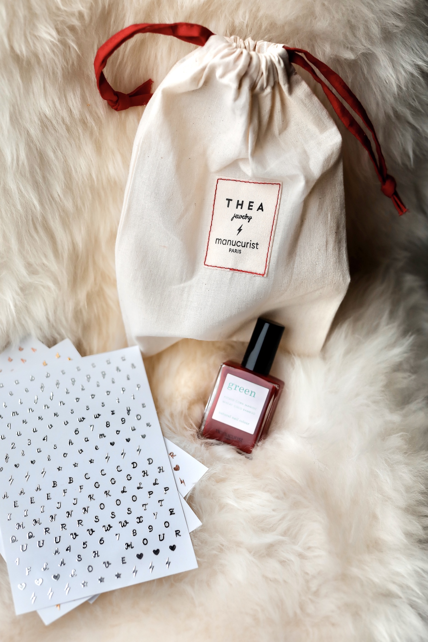 Une collab pile dans l’ADN de Thea qui prône le pouvoir des mots et de la personnalisation avec au programme des stickers avec les lettres de la typo des bijoux Thea à coller très facilement sur ses ongles… Un joli alphabet en or rose, blanc et jaune et des symboles chers aux 2 marques, à porter sur le bout des doigts pour affirmer, se souvenir, s’encourager… A l’image des bijoux Thea, on affiche donc même sur ses ongles nos initiales, un mot mantra, une lettre, le prénom de l’amoureux, une date fétiche ou une heure de rencontre… Tel un tatoo, on révèle de cette manière un petit peu de nous et de ce qui nous fait aimer, vibrer, bouger.