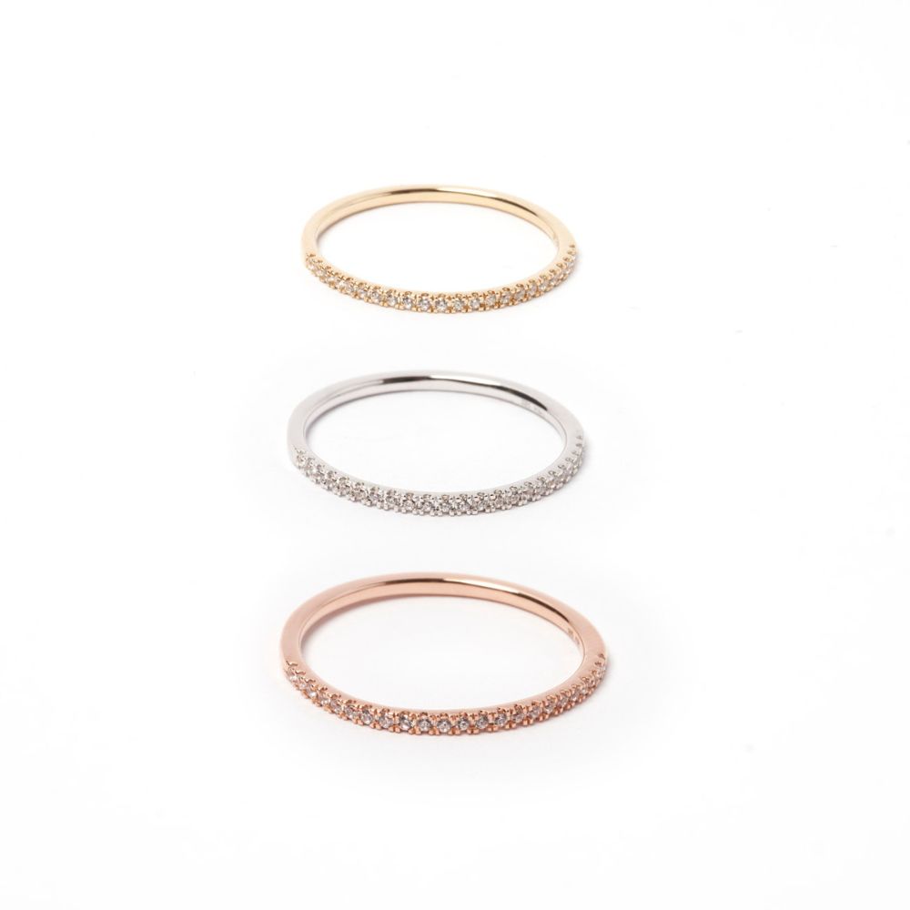 Elles sont en or 14 carats et 23 zircons, disponible dans les 3 or (blanc-jaune-rose) et en 4 tailles (50, 52, 54 et 56).