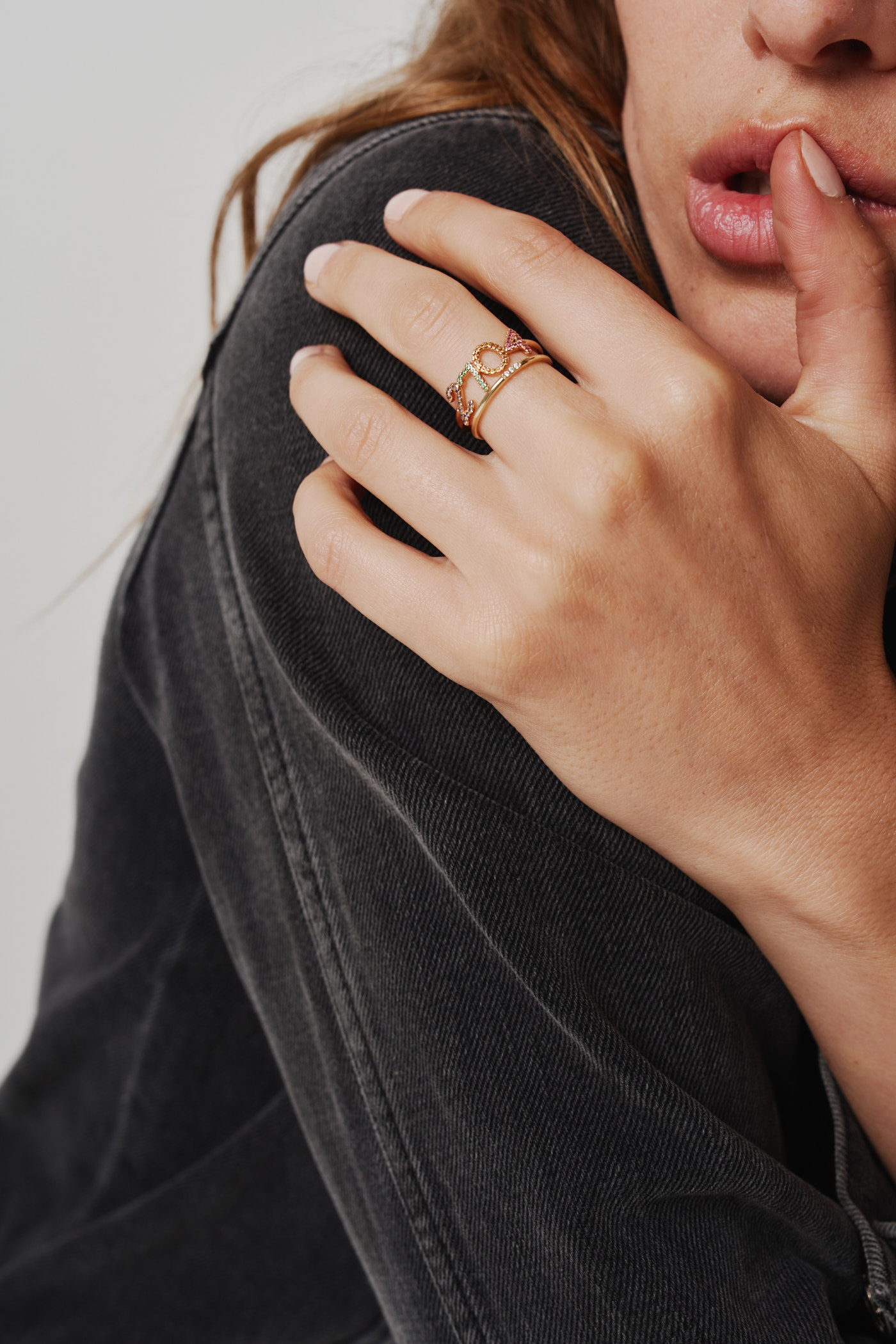 Le conseil d’Emilie : elle est discrète, mais elle porte 3 minis pierres trop mignonnes qui donnent un petit coup d’éclat au look. Elle se porte en duo avec des bagues signatures de Thea dont les lettres montent vers le haut en majusculse ou en minuscules style 2506, David, warrior…